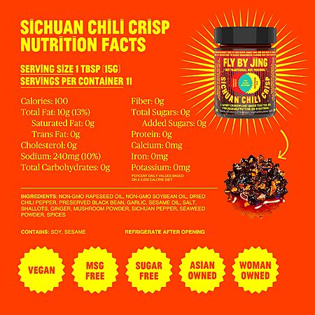 FLYBYJING Sichuan Chili Crisp - Premium Spicy Savory All-Natural Vegan Chili Oil - Crunchy Hot Sauce, Good on Everything, Sugar Free - 6oz (Pack of 1) $9.98