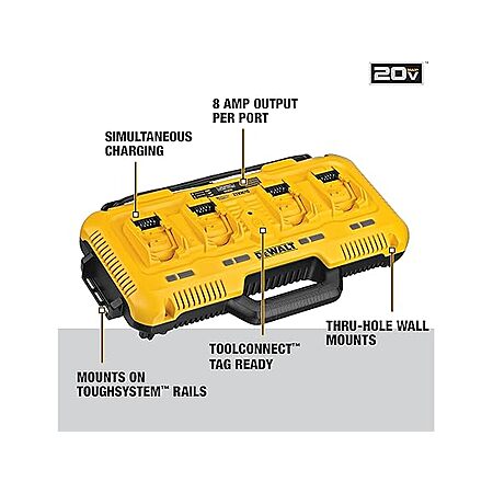 • Simultaneous Charger: All ports of the DEWALT 20V battery charger charge at the same time