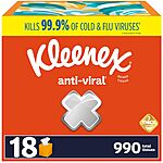 1980-Count Kleenex Anti-Viral 3-Ply Facial Tissues $15 Amazon Credit $43.94 w/ S&S + Free Shipping