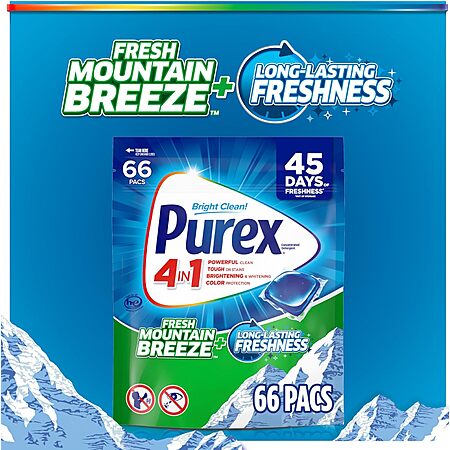 66-Count Purex 4-in-1 Laundry Detergent Pacs (Mountain Breeze) for $9.97 -