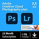 1-Year Adobe Creative Cloud Photography Plan 1TB (Digital Download, Mac, Windows, iOS) on sale for