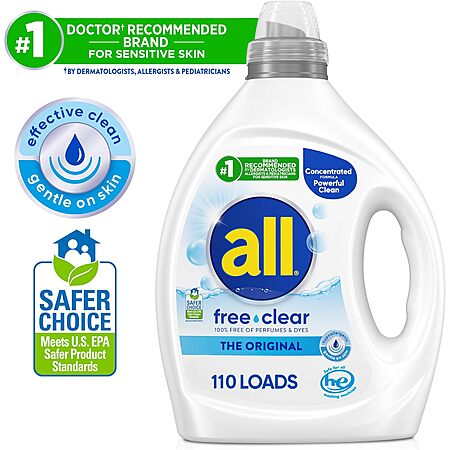 82.5-Oz all Liquid Laundry Detergent (Unscented, 110 Loads) for $11.22 -
