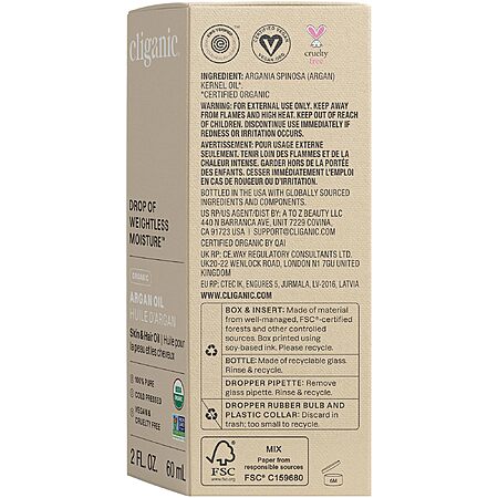 2-Oz Cliganic Organic Argan Oil for Hair, Face or Skin