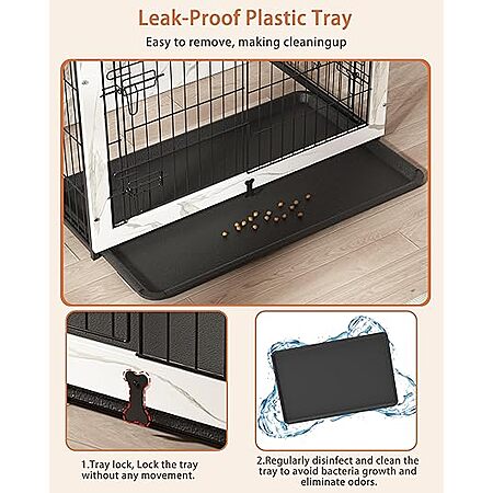 Megidok Wooden Dog Crate Furniture with Cushion, Dog Crate End Table with Tray, Double Doors Dog Crate(*L:43.1" L*28.6" W*30.3" H, Marble White) $138.50