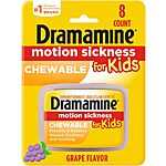 8-Ct Dramamine Kids Chewable Tablets for Motion Sickness (Grape Flavor) on sale for $4.57 - $1.37 (30%) off when you 'clip' the