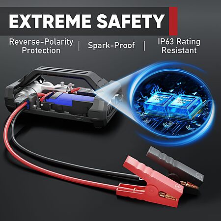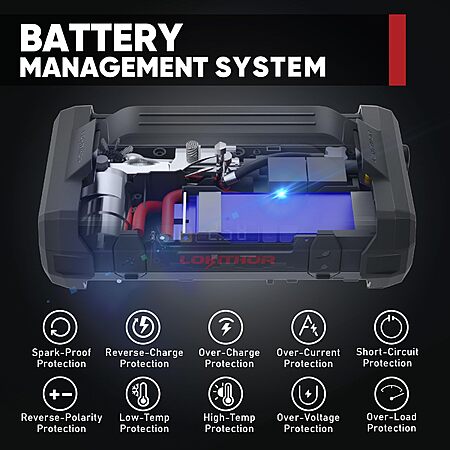 Multi-Protection & UL Listed - Jump starter can detect itself voltage in real time and alarm for abnormal conditions. Built-in Latest BMS power management system, provides short-circuit protection, over-curent protection, reverse connection protection, over-heat protection, over-charging protection and clip falling off protection. UL-2743 listed, make the ultimate protection for you and your car safety.