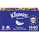 Amazon has 8-Pack 180-Count Kleenex Ultra Soft Facial Tissues for $20.57 - 25% when you 'clip' the coupon on product page - 10% when you check out via Subscribe & Save = $13.37 -> now $15.06. Shipping is free with Prime or on $35+ orders.