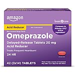 Amazon [amazon.com] has 42-Count Amazon Basic Care 20mg Omeprazole Delayed Release Acid Reducer Tablets for $9.87 - 25% when you 'clip' the coupon on product page - 5% when you check out via Subscribe & Save = $6.91.