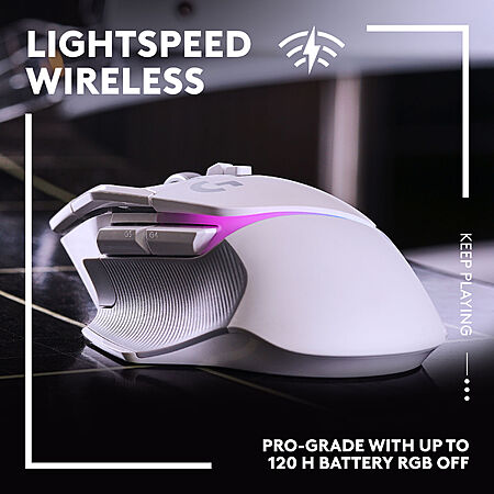 - LIGHTSYNC RGB: This RGB gaming mouse features glowing 8-LED lighting that's customizable and adapts as you game with startup/power-down effects and battery optimization through active play detection