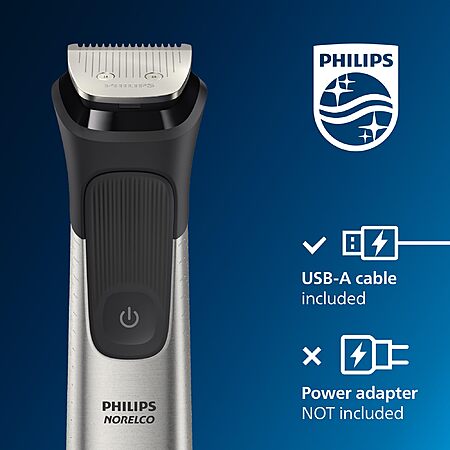 The set includes: 1x Multigroom handle and a set of attachments and combs for face, head and body trimming - see the what's in the box section; 1x USB-A charging cable (power adapter not included)