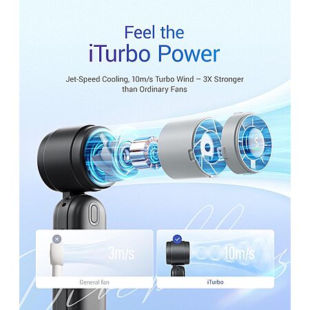• Up to 12 Hours Stay cool all day with a 4000mAh battery. Type-C fast charging. iTurbo keeps you powered. Choose from 5 adjustable speeds for your perfect breeze, from light gusts to strong winds.