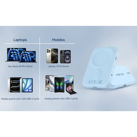 MINIX - M.2 NVMe SATA SSD Enclosure with Magsafe for iPhone 15/16 Pro/Pro Max ProRes & USB-C Devices, PD60W 10Gbps, 3.5mm Audio - Blue $36.99