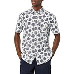 Amazon Essentials Men's Short Sleeve Shirt (Navy White Palm Leaf, Size Medium)
