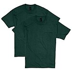 2-Pack Hanes Men's 100% Cotton Heavyweight Pocket T-Shirt (Deep Forest)