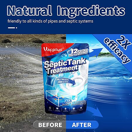 VACPLUS via Amazon [amazon.com] has 12-Count Vacplus Septic Tank Treatment (1-Year Supply; Fragrance Free) for $8.49 - 50% when you 'clip' the coupon on product page - 5% when you check out via Subscribe & Save = $3.83.