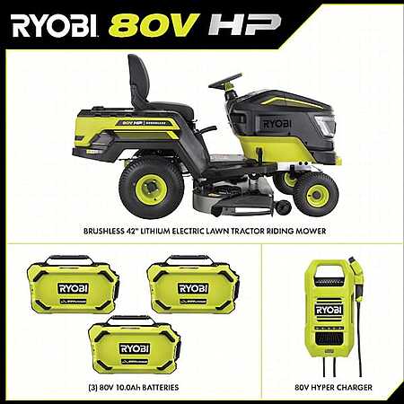 80V HP Brushless 42 in. Battery Electric Cordless Riding Lawn Tractor with (3) 80V 10Ah Batteries and Charger $2999