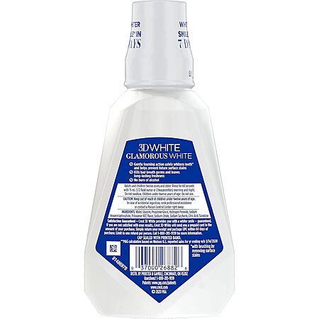 4-Pack 16-Oz Crest 3D White Glamorous White Alcohol Free Multi-Care Whitening Mouthwash (Arctic Mint) $15.04 ($3.76 each) w/ S&S + Free Shipping w/ Prime or on $35+