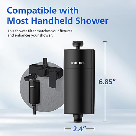 Philips Shower Filter Water Softener, Shower Filtration with Double Mesh & NSF Certified KDF Material, Black $29.68