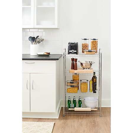 Amazon[amazon.com] has Rubbermaid 4-Tier Freestanding Heavy Duty Multipurpose Wire Shelf (Satin Nickel) for $22.23. Shipping is free w/ Prime or on $35+.