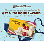 Cheesecake Factory Father's day $20 bonus on $100 gift card