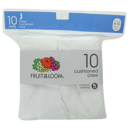 Model: Fruit of the Loom Everyday Cushion Crew Socks for Women, Sizes 4-12 (10-Pack)