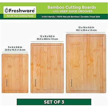 Set of 3 Freshware Bamboo Wooden Kitchen Cutting Boards $6.99 + Free Shipping w/ Prime