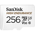 SanDisk 256GB High Endurance Video microSDXC Card with Adapter for Dash Cam and Home Monitoring systems - C10, U3, V30, 4K UHD, Micro SD Card - SDSQQNR-256G-GN6IA $22.99