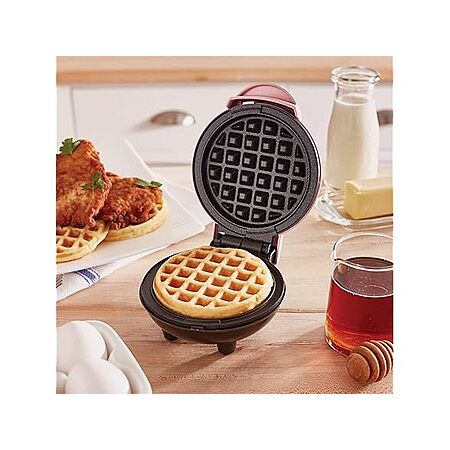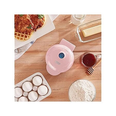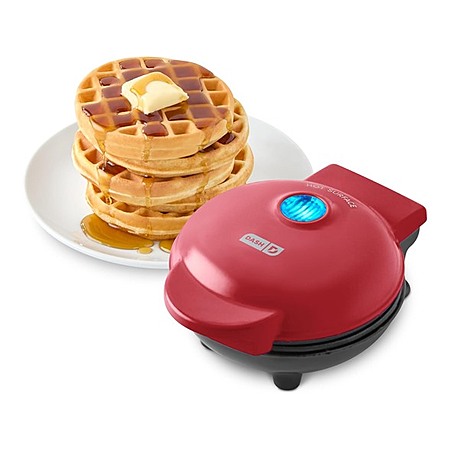 • This DASH Mini Waffle Maker cooks 4" snack-sized mini waffles.