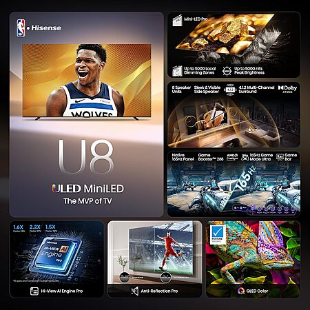 $4539.43: 100″ Hisense U8 Series Mini-LED ULED 100U8QG Google Smart TV at Amazon