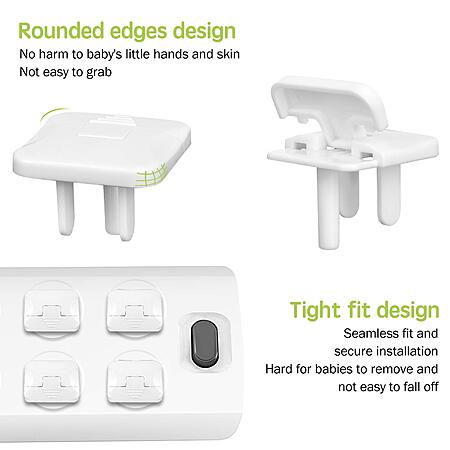 Product Description from Amazon:- [Double protection] Baby proof outlet covers are designed with a hidden ring-pull handle. The pull and push dual protection is easy for adults to remove and do not hurt their fingernails. The arc edge design is difficult for babies to grab and take out. Electric outlet cover protects kids and pets without affecting your daily use.