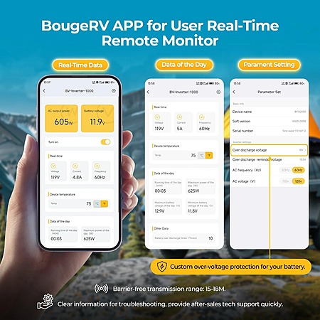 BougeRV 1000W 12V Pure Sine Wave Inverter with Bluetooth