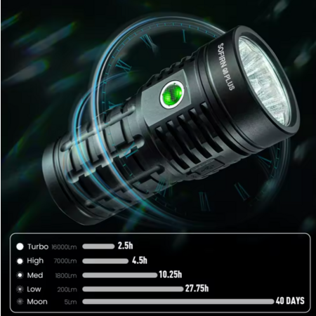 • 16000-lumen turbo mode lets you see up to 1817 feet