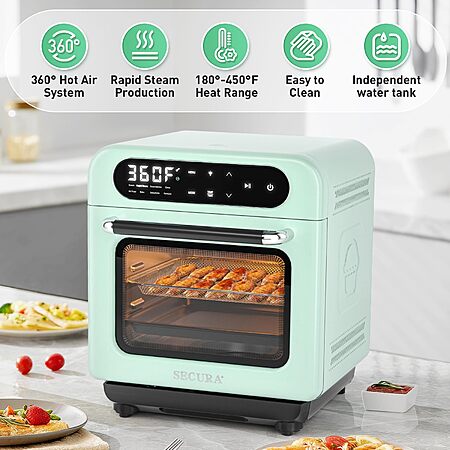 Model: Secura Multifunction Air Fryer Steam Oven, 13 Quart Compact Oven with Convection Bake, Airfryer, Rapid Steam, Ferment, Dehydrator Combo, Nutritious & Delicious Food Steamer for Cooking (Mint Green)