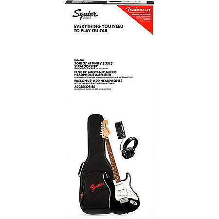 Squier Affinity Series Stratocaster Electric Guitar Starter Pack w/ Fender Mustang Micro Headphone Amplifier, Presonus HD9 Headphones + Accessories $364.99 + Free S/H