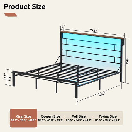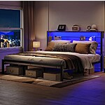 Bestier King Size Bed Frame with 49.2" High LED Storage Headboard Shelf, Metal Platform Bed, Black $131.88
