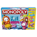 | Product Description: | In this exciting edition of the Monopoly game, players buy up as many Rounds as they can. The more Rounds they own, the more Kudos they can collect. Players move around the board as a Fall Guys character token, performing wild actions such as jumping, grabbing, and falling to victory! Besides dodging the 3D obstacles, players collect valuable Crowns when passing Go, and roll the Knockout die to change gameplay. The Monopoly: Fall Guys Ultimate Knockout Edition game makes a fun birthday gift or holiday gift for players ages 8 and up. The Fall Guys mark, logo and characters are trademarks of Mediatonic Limited. © 2022 Devolver Digital Inc. The Hasbro, Hasbro Gaming, Parker Brothers, and Monopoly names and logos, the distinctive design of the gameboard, the four corner squares, the Mr. Monopoly name and character, as well as each of the distinctive elements of the board and playing pieces are trademarks of Hasbro for its property trading game and game equipment.•FALL GUYS THEME: Become the Blunderdome champion! This Monopoly game features exciting gameplay, colorful artwork, zany game components, and character tokens inspired by Fall Guys Ultimate Knockout•DODGE OBSTACLES: Let the chaos begin! Players dodge interactive obstacles placed around the gameboard! Avoid Big Yeetus, Moving Wall, and See Saw obstacles, and activate them to foil other beans•INCLUDES KNOCKOUT DIE: When a player begins their turn, they'll roll the Knockout die. This will let them do things such as activate obstacles, collect Kudos, or even move other players•BUY ROUNDS, COLLECT CROWNS: Move around the board buying as many Rounds as possible. When passing Go, collect a Crown! Each one hauls in 10,000 Kudos at the end of the game•FOR FALL GUYS FANS: The Monopoly: Fall Guys Ultimate Knockout Edition game is a fun twist on classic Monopoly gameplay and makes a great gift idea for fans of Fall Guys, and players ages 8 and up•Ages 8 and up •For 2 to 4 players.• FALL GUYS THEME: Become the Blunderdome champion! This Monopoly game features exciting gameplay, colorful artwork, zany game components, and character tokens inspired by Fall Guys Ultimate Knockout DODGE OBSTACLES: Let the chaos begin! Players dodge interactive obstacles placed around the gameboard! Avoid Big Yeetus, Moving Wall, and see-saw obstacles, and activate them to foil other beans INCLUDES KNOCKOUT DIE: When a player begins their turn, they'll roll the Knockout die. This will let them do things such as activate obstacles, collect Kudos, or even move other players BUY ROUNDS, COLLECT CROWNS: Move around the board buying as many Rounds as possible. When passing Go, collect a Crown! Each one hauls in 10,000 Kudos at the end of the game Ages 8 and up For 2 to 4 players |