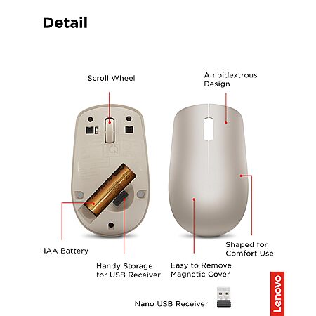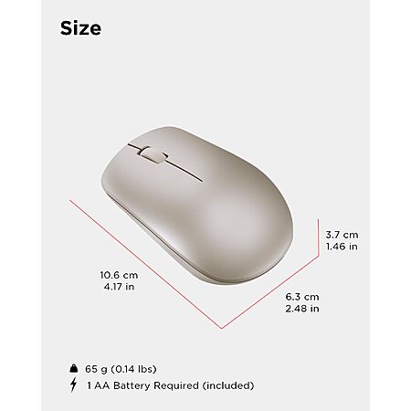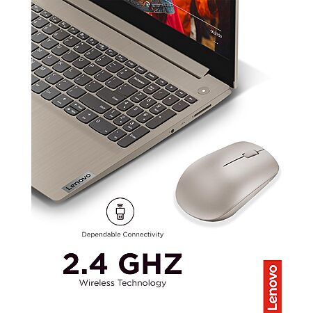 Lenovo 530 Full Size Wireless Computer Mouse (Almond) for