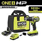 Model: RYOBI ONE+ HP 18V Brushless Cordless 1/2 in. Drill/Driver Kit with (2) 2.0 Ah HIGH PERFORMANCE Batteries, Charger, and Bag