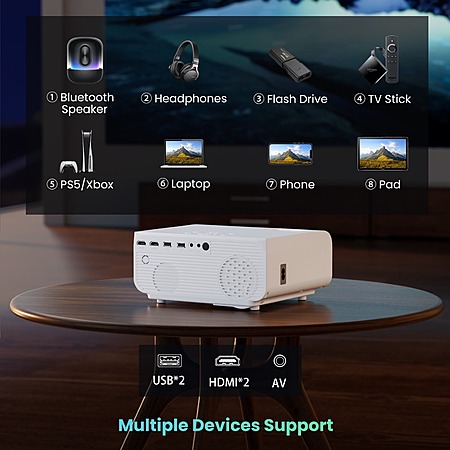 • The Bluetooth 5.1 feature provides faster pairing and more stable connections to your external audio devices, ensuring superior sound quality. Enjoy your content without interruptions, thanks to the enhanced range and stability of this Bluetooth projector.
