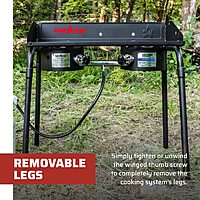 - Recessed carry handle and secure space to store regulator makes stove easy to transport; heavy-duty latch keeps the stove closed while traveling