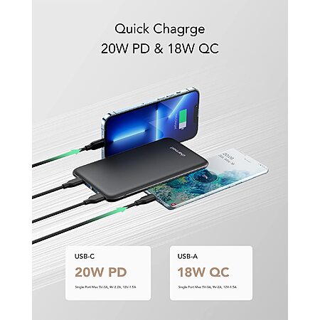 18W USB C Portable Charger Quick Charge 3.0 Battery Pack Compatible with MacBook, iPad, iPhone, Samsung, Pixel, More Phones, Tablets