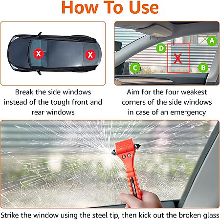 Prime Members: 2-Pack Amazon Basics Emergency Seat Belt Cutter & Window Hammer Tool