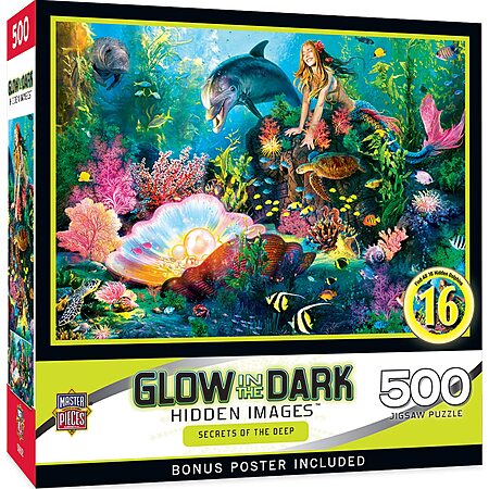 500-Piece Masterpieces Glow in The Dark Jigsaw Puzzle (Secrets of The Deep) w/ Poster $8.97 + Free Shipping w/ Prime or on $35+