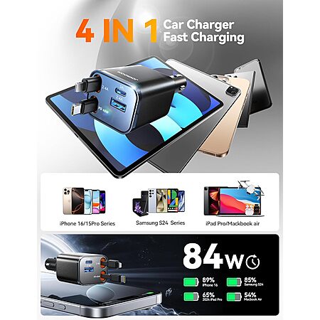Model: [2025 Ultra-Compact] 84W Retractable Car Charger, [Upgrade PD 45W] Car Charger USB C for iPhone 16 Pro Fast Charging, Car Accessories, Travel Essentials Gifts for Women Men, for iPhone 16 15 14 13 12