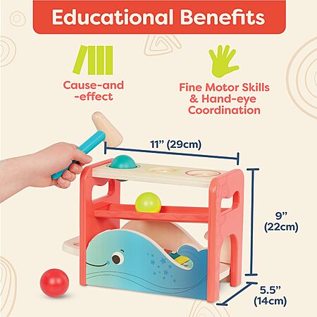 - Developmental Toy: The Xylo-Pound Whale sparks creativity, develops fine motor skills, and improves hand-eye coordination.
