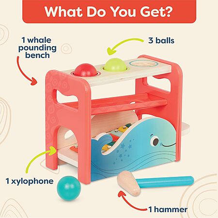 - Pounding Bench & Xylophone: A 2-in-1 whale-inspired toy and musical instrument for toddlers!
