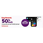 I went back to place a second order and found out that if you put toner in your cart THEN activate the deal, that toner is not covered, so make SURE you activate the 50% offer FIRST with an EMPTY cart, THEN shop for the ink-toner. If you do it correctly, there is an "EASY REWARDS" logo with a link next to each ink/toner item in your cart.