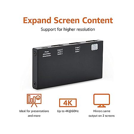 AmazonBasics HDMI Splitter 1 in 2 Out, 4K@60Hz for Dual Monitors, Mirror Only + Free Standard shipping w/ Prime $3.99