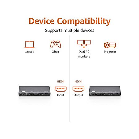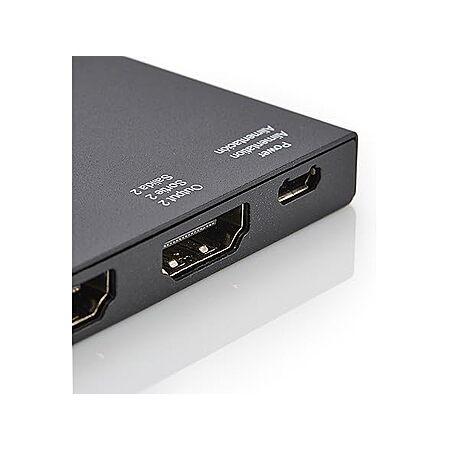 • HDMI splitter sends 1 source signal to 2 displays simultaneously, like from a computer to 2 TVs or monitors