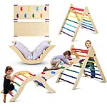 Model: FAHKNS Pikler Triangle Set Climber 5 in 1, Foldable Toddler Climbing Toys, Indoor Children's Playground with Ramp, Arch, Mat and Climbing Tripod, Wooden Montessori Climbing Toys